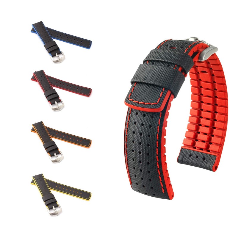 - Thanks to the edge-precise design, the coloured patent stitching and the integrated loop security, the watch strap fits perfectly for larger chronographs and sporty watches. The band is well suited for people with "normal" wrists.