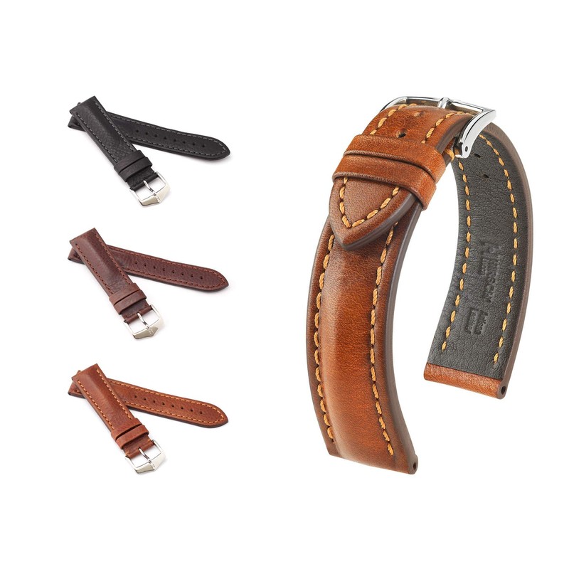 HIRSCH Men's Watch Strap Cowhide Leather Model Lucca 22 mm Golden Brown, Strap.