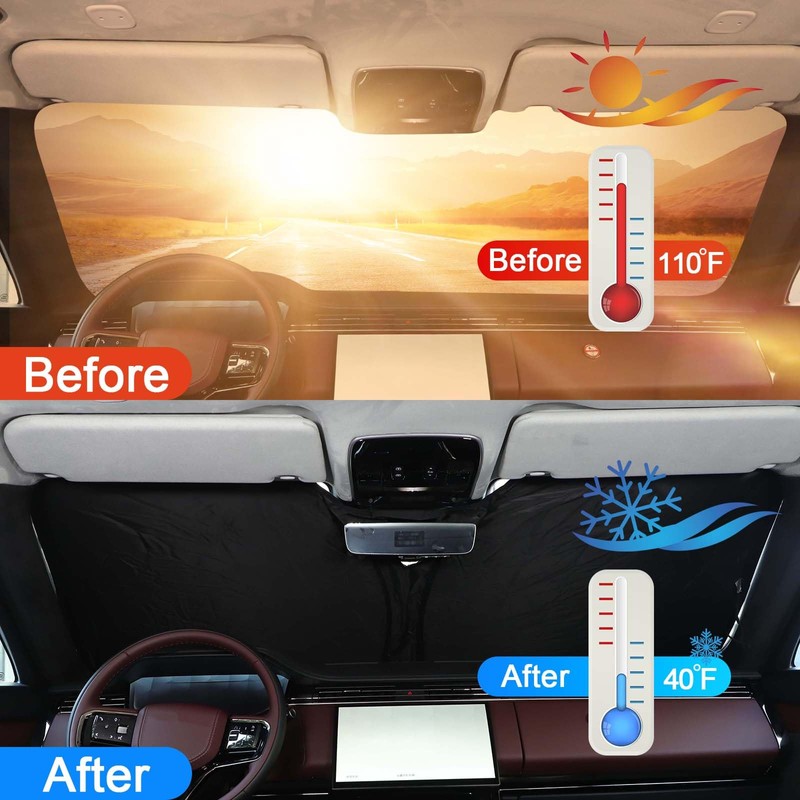 - 【UV Protection】Our range rover sport sun visor can well cover the entire window, effectively blocking 99% of harmful ultraviolet rays and heat, preventing strong ultraviolet rays from penetrating, and causing accelerated aging of the vehicle interior, seats, instrument panels, and other electronic devices.