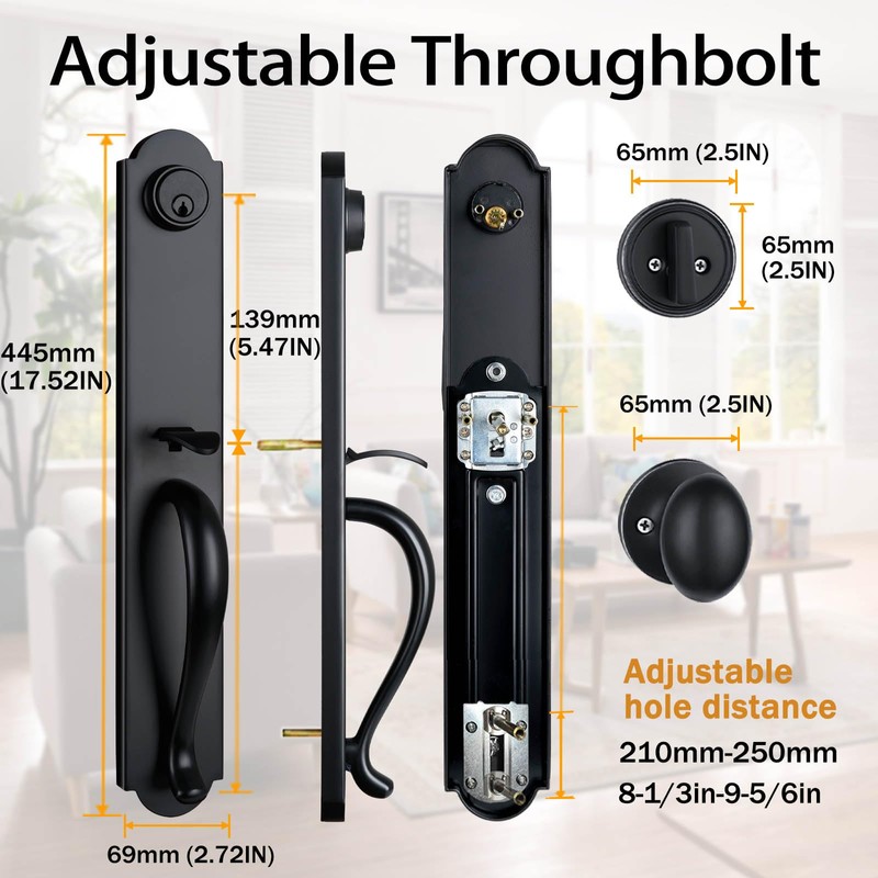 - 【Adjustable hole distance】You can slide bottom throughbolt to fit your door hole distance.