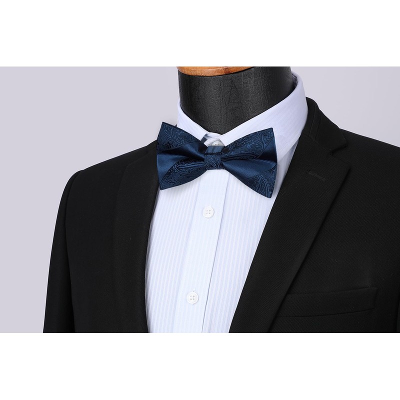 HISDERN Bow Tie Men's Already Tied Adjustable Bow Plain Paisley Floral Bow Ties for Men Wedding Suit Tuxedo, navy blue-3