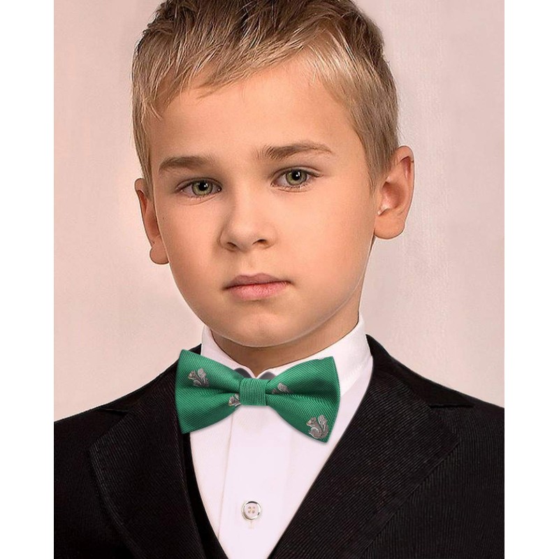 - Material - This boys bowtie is made from a carefree microfiber. Microfiber is very similar in look and feel to silk, but offers the advantage of being more resistant to stains and wrinkles.