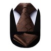 HISDERN Check Wedding Plaid Tie Handkerchief Men's Necktie Pocket Square Set For Formal Business(Brown)