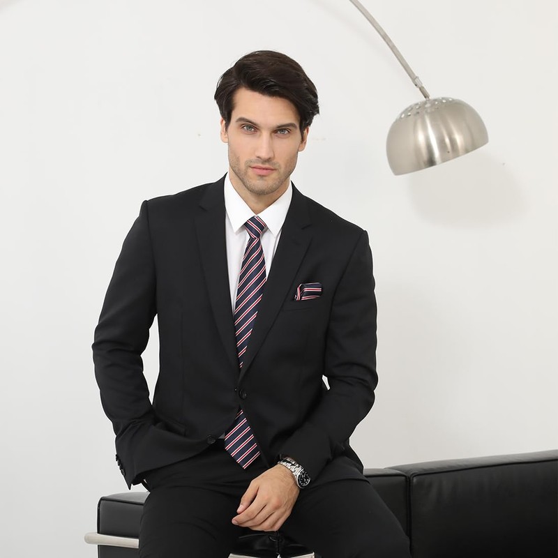 - 【Style All-match】 A variety of colors and styles are available to meet your needs for all occasions. The long size can meet different wearing styles. A must-have accessory for any successful men. These tie and pocket square set can be matched with your daily dress, suit tuxedo, formal shirts, etc.