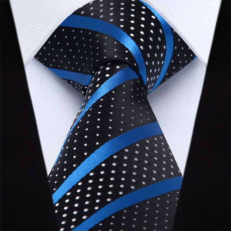 HISDERN Extra Long Striped Tie Handkerchief Men's Necktie & Pocket Square Set (Blue & Black)