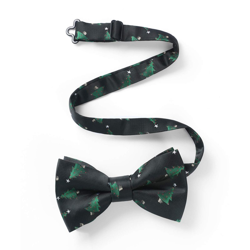 HISDERN Men's Christmas Bow Tie and Pocket Square Set Xmas Green Bow Tie Pre Tied with Handkerchief with Christmas Tree for Christmas Party