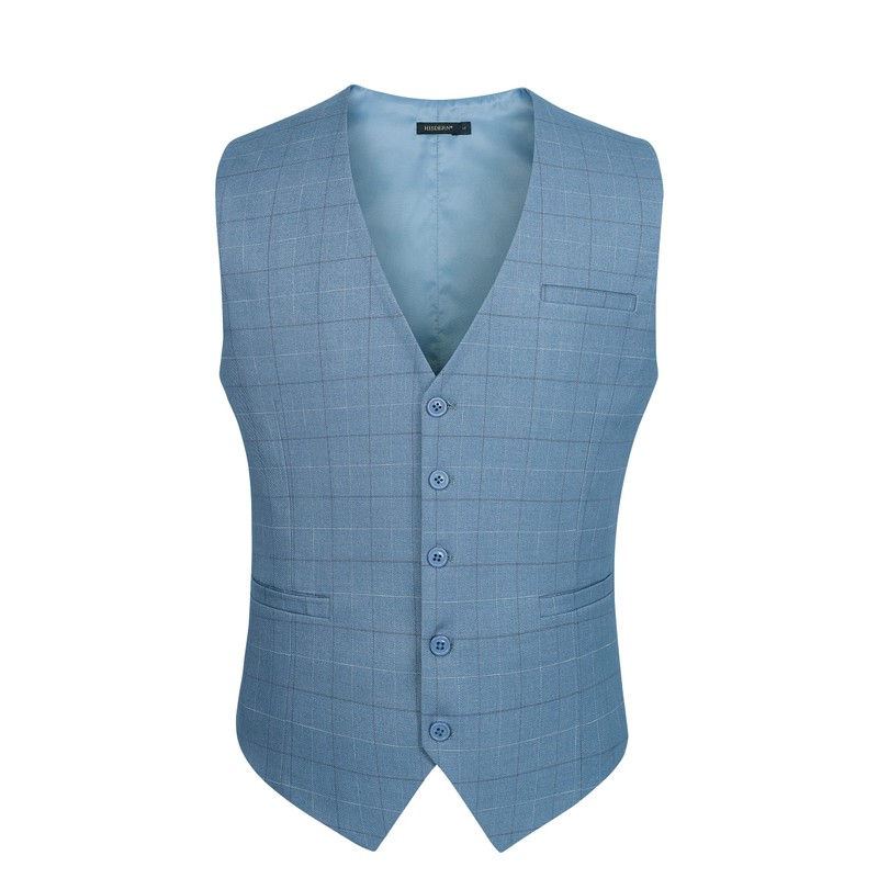Hisdern Men’s Formal Plaid Wedding Reception Suit Waistcoat in Cotton, lightblue