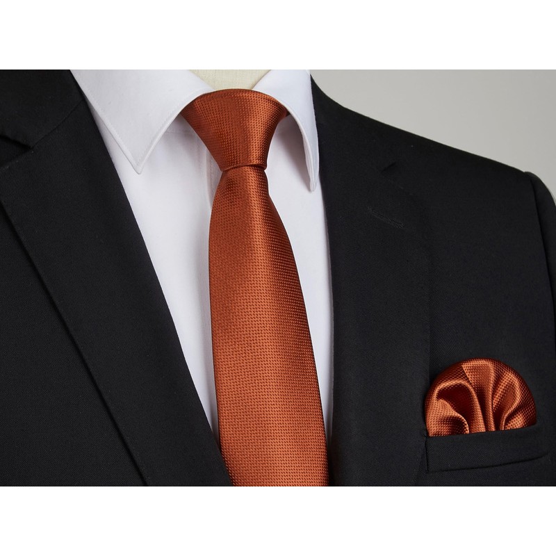 HISDERN Men's Orange Tie Rust Tie and Pocket Square Towel Set Classic Business Casual Textured Handkerchief Solid Color Woven Tie Wedding Party Prom Vibrant
