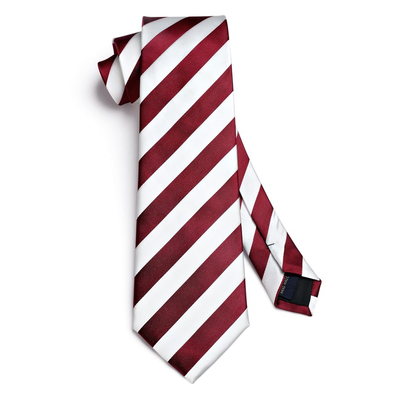 HISDERN Men's Tie Striped Wedding Tie & Pocket Square Set, red/white