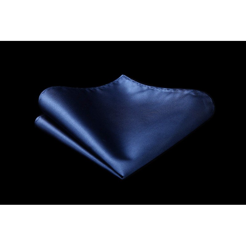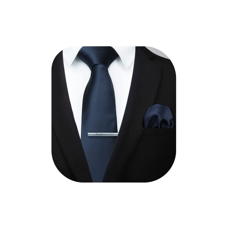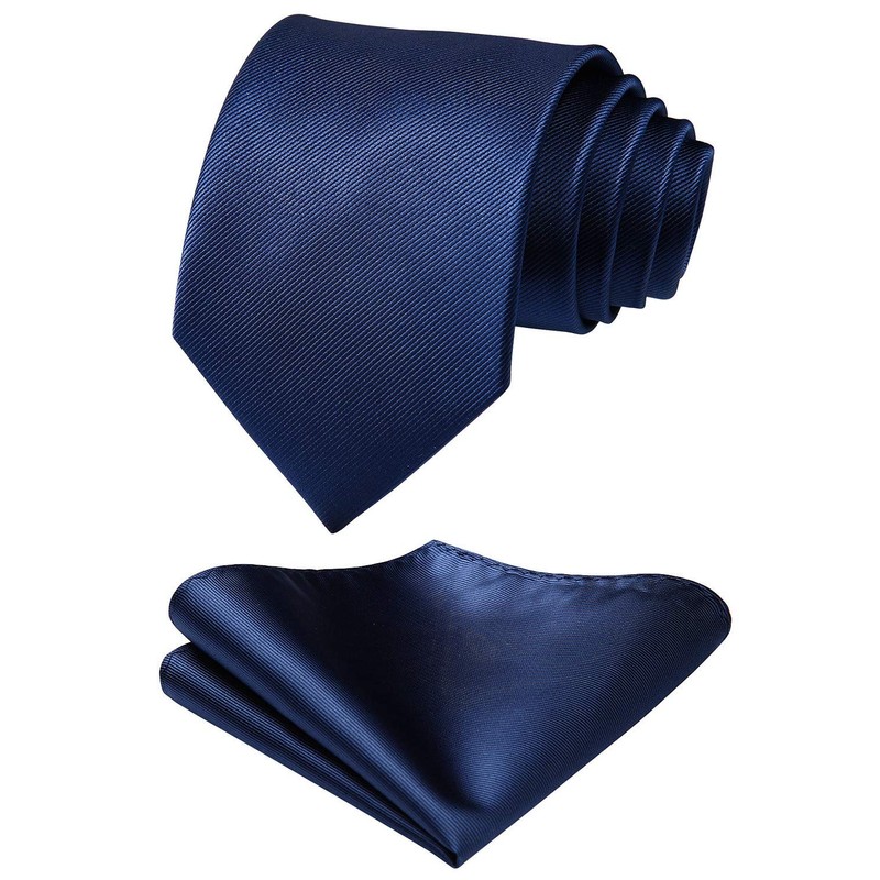 HISDERN Men's Wedding Ties and Pocket Square Tie Clip Set Plain in Various Colours, navy blue