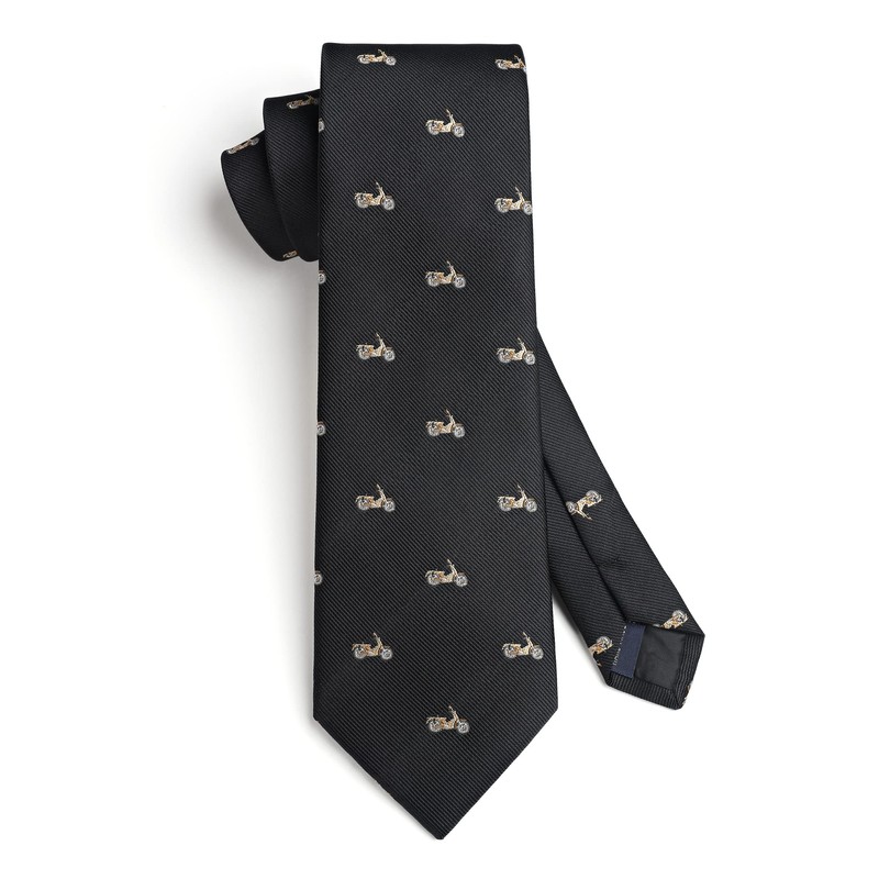 HISDERN Mens Black Tie Holiday Funny Necktie Silk Ties For Men Handkerchief Motorcycle Pattern Neck Tie Pocket Square Set For Formal Business Party