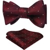 HISDERN Mens Bowties Self Tie Wine Red Plaid Polka Dots Bow Tie and Pocket Square Woven Formal Tuxedo Bowties & Handkerchief for Wedding
