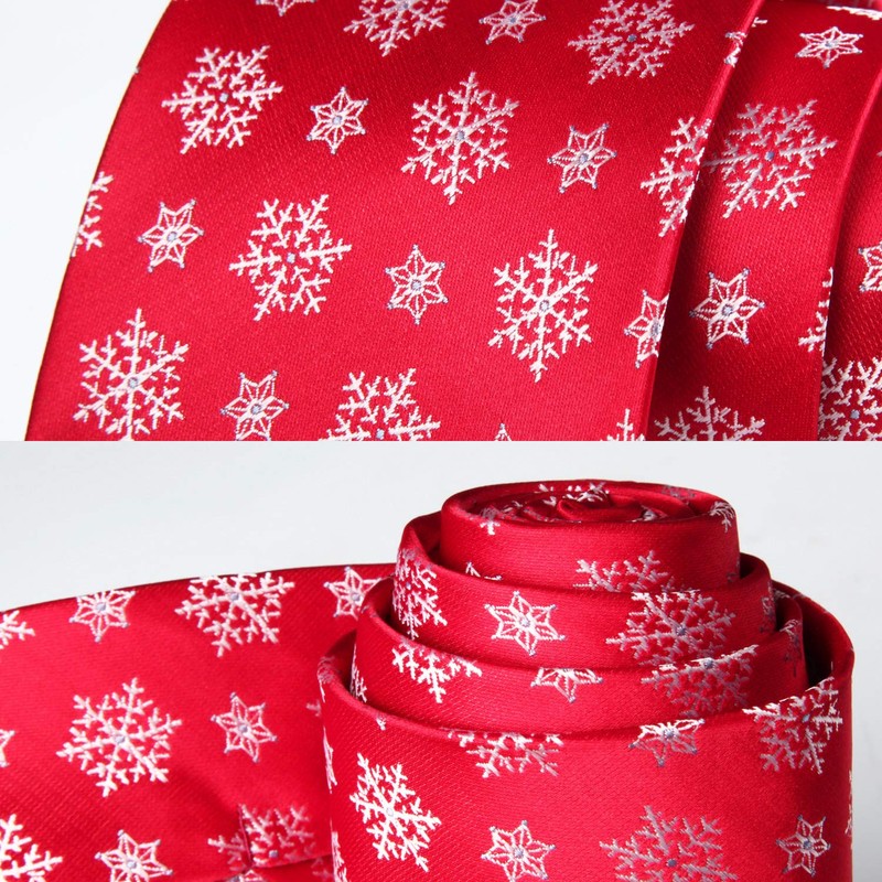 HISDERN Mens Tie Christmas Snowflake Red Ties and Pocket Square Xmas Holiday Funny Silk Ties for Men Woven Jacquard Vacation Party Necktie