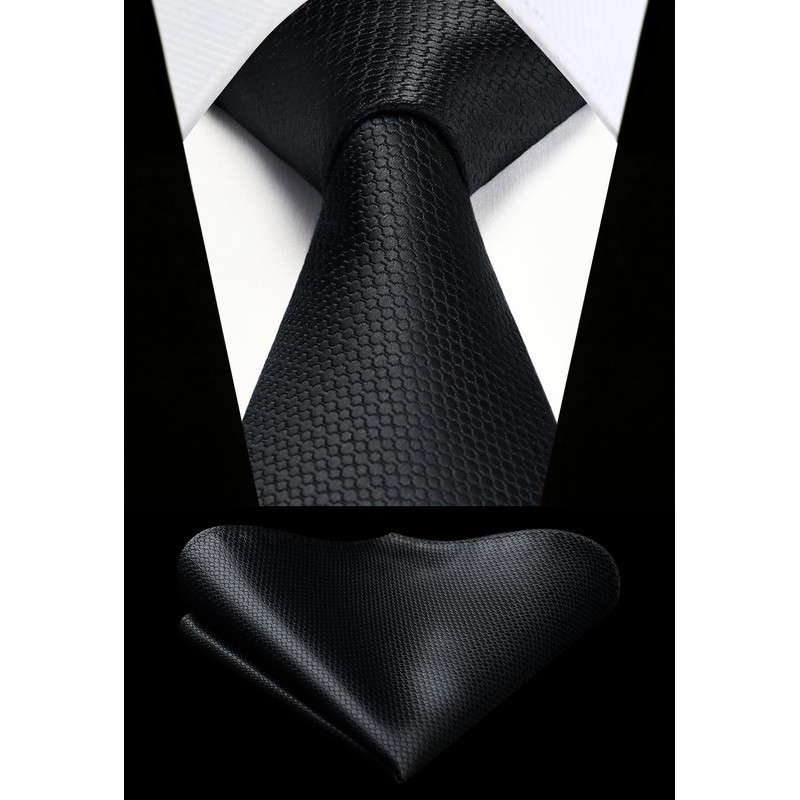 HISDERN Ties for Men 3.4 inch Black Tie and Pocket Square Set Classic Silk Tie for Funeral Business
