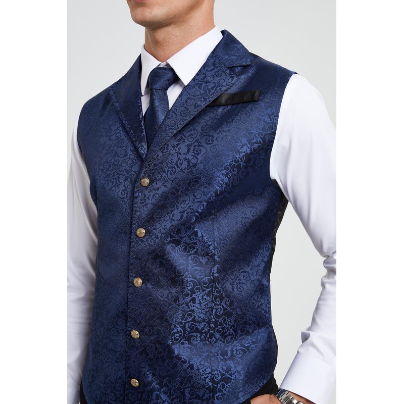 HISDERN Vests for Men Blue Victorian Men's Suit Vest Paisley Steampunk Gothic Men Vest Formal Waistcoat Vest for Suit Tuxedo V-Ncek Party Wedding