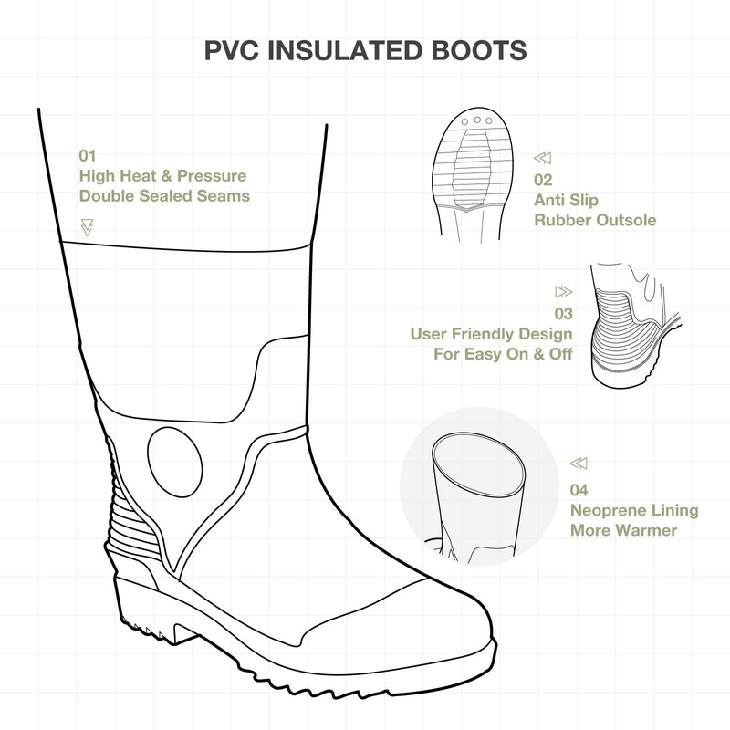 • Durable & Sturdy – The solid and durable waders’ rubber boots come lined with 200 Gram 3M Thinsulate Ultra Insulation to help block out the cold, and feature cleated soles for better traction.