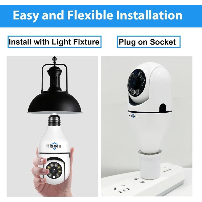 3.Wireless & Simple Install Simple and easily installation. Simply screw the camera into a standard E27 lamp socket, and connect the camera system to Wifi. Everyone can do it. No tech knowledge required.
