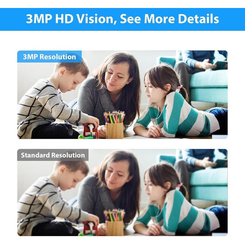 1.3MP HD Resolution / Color Night Vision High-resolution sensor that captures detailed and clear video. 4 infrared lights + 4 white lights with night vision detection automatic switching.