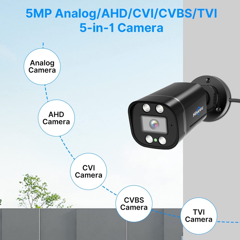 - HD 5MP Highest Resolution & 60ft Night Vision -- Hiseeu home security systems compared with most low Resolution 1080p/2MP, Hiseeu highest 5MP resolution would provide you a vivid and clear image up to 2560×1920 pixel, along with clear and crisp night vision up to 60 ft with Infrared LED Lights inside of the camera's automatic IR-cut filter.