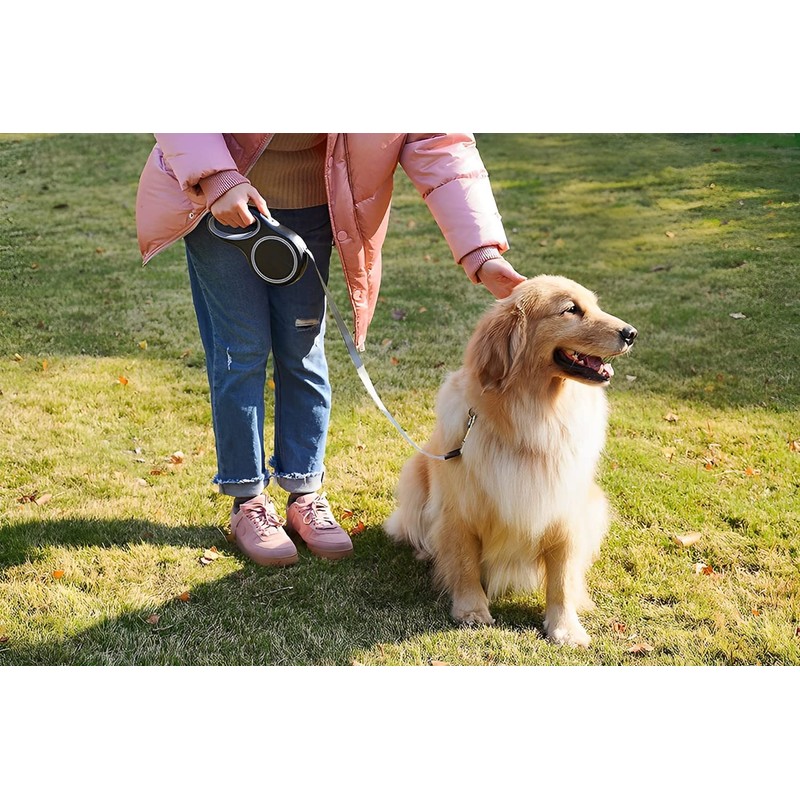- 【Longitud de 5 m】 La correa de nylon retráctil para correa de perro se puede extender hasta 5 metros, adecuada para cualquier perro que pese hasta 20 kg, diseño resistente y duradero, sin ruido para uso diario, que permite a sus amigos perros explorar, pero aún dentro una distancia segura