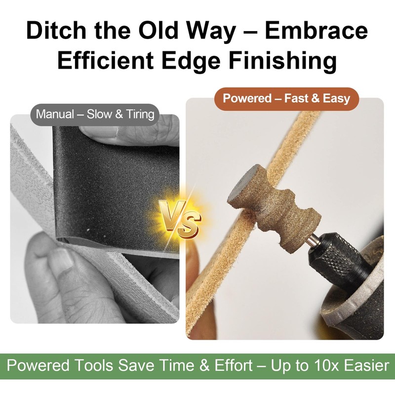 • 【ENGINEERED FOR STABILITY & LONG-TERM USE】These bits stay stable with minimal vibration, even at high speeds—ensuring smooth, consistent edge work. Made with a leather-specific abrasive formula, they offer strong durability under normal use. To extend their lifespan, use the right grit for your leather’s hardness, avoid heavy pressure, and clean the bits after each session