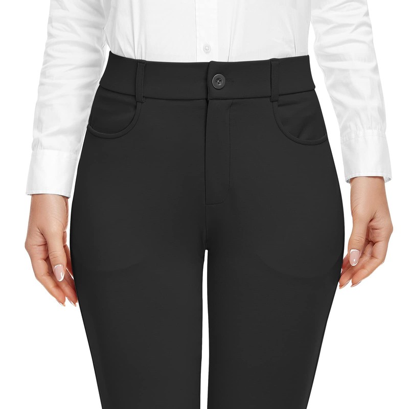 - DRESS PANTS FOR WOMEN: (87%Polyester 13%Elastane) Belt loops, zipper fly with button, streamlined design, make these pants professional enough for business casual, work, office, yoga or golf.