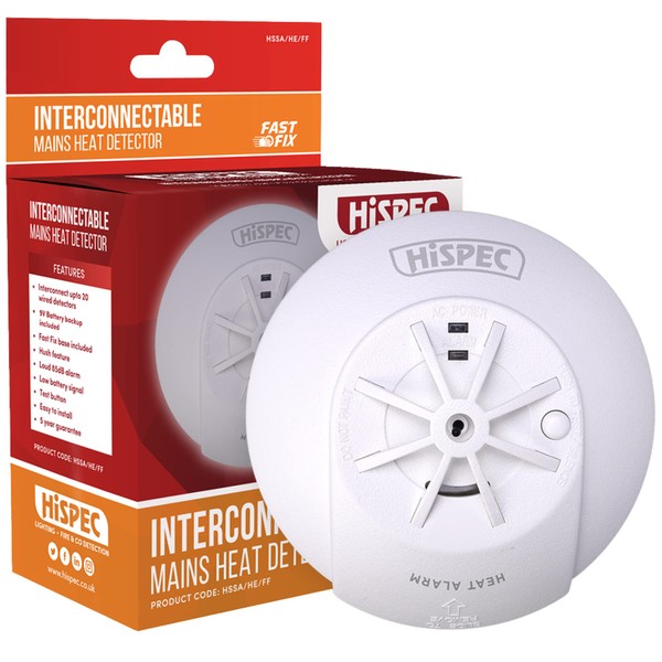 • Interconnectable Fast Fix Mains Heat Detector with 9V Backup Battery Included: Loud 85dB Alarm Test Function and Hush feature