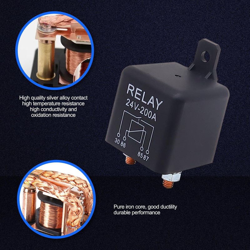 - High quality relay: Brand new, battery disconnect relay, high quality, durable, firm and stable. Contact load: high power. Suitable for general 24 V applications, maximum 200 A switching power supply