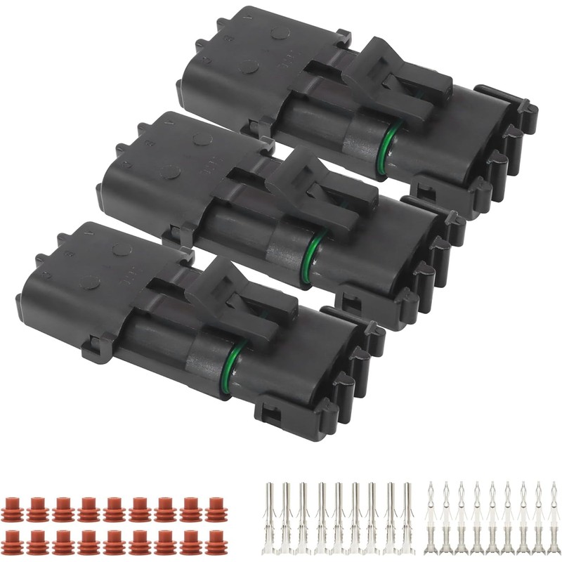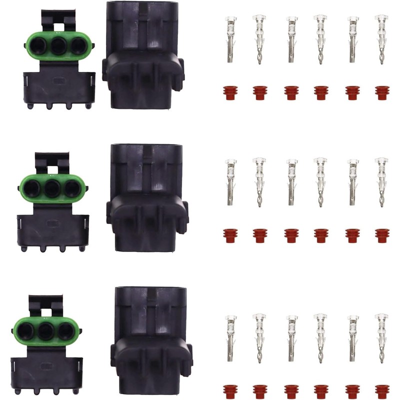 - Package Included: 3pcs male connector housing, 3pcs female connector housing, 9pcs male terminals, 9pcs female terminals, 18pcs silicon rubber cable seals.: a total of 3 sets of automotive connectors waterproof are included, Ideal for 18-14 AWG wires