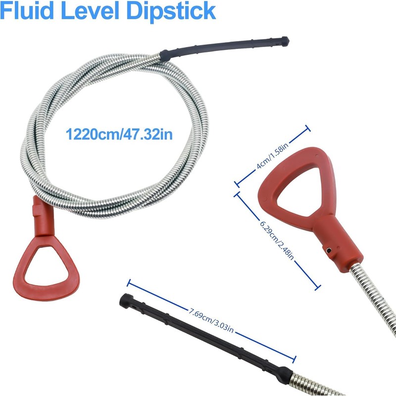 - 3. Einfach zu installieren: Das Messstab-Set ist so konzipiert, dass es einfach zu installieren ist, sodass Sie Motoröl- und Getriebeflüssigkeitsstände schnell und einfach prüfen können. Stecken Sie den Messstab einfach in die dafür vorgesehenen Schlitze am Motor und Getriebe Ihres Fahrzeugs, um loszulegen