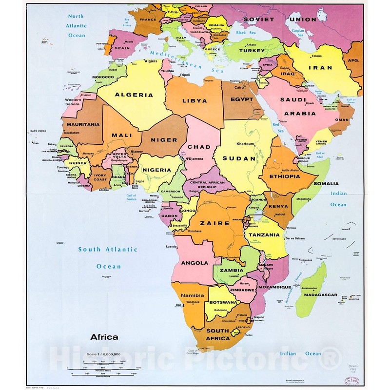 Historic 1982 Wall Map - Africa. 22in x 24in