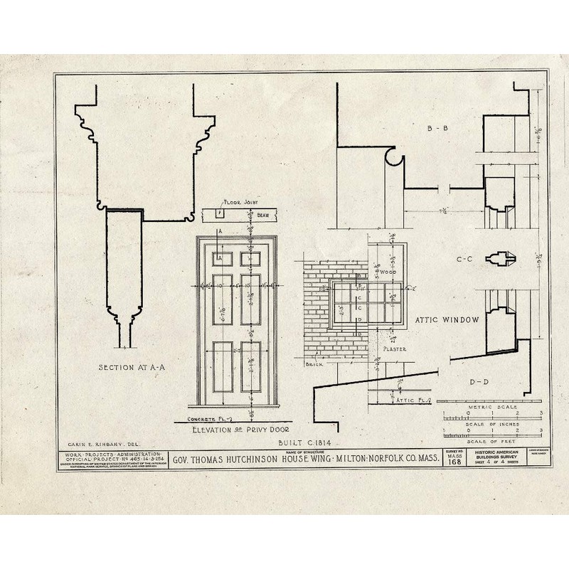 Historic Pictoric : Blueprint HABS Mass,11-Milt,5A- (Sheet 4 of 4) - Governor Thomas Hutchinson House (Wing), 195 Adams Street, Milton, Norfolk County, MA 14in x 11in