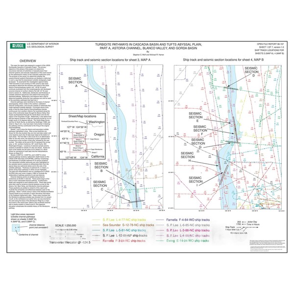 Historic Pictoric Map : Turbidite Pathways in Cascadia Basin and Tufts abyssal Plain, Part A, Astoria Channel, Blanco Valley, and Gorda Basin, 1999 Cartography Wall Art : 30in x 24in