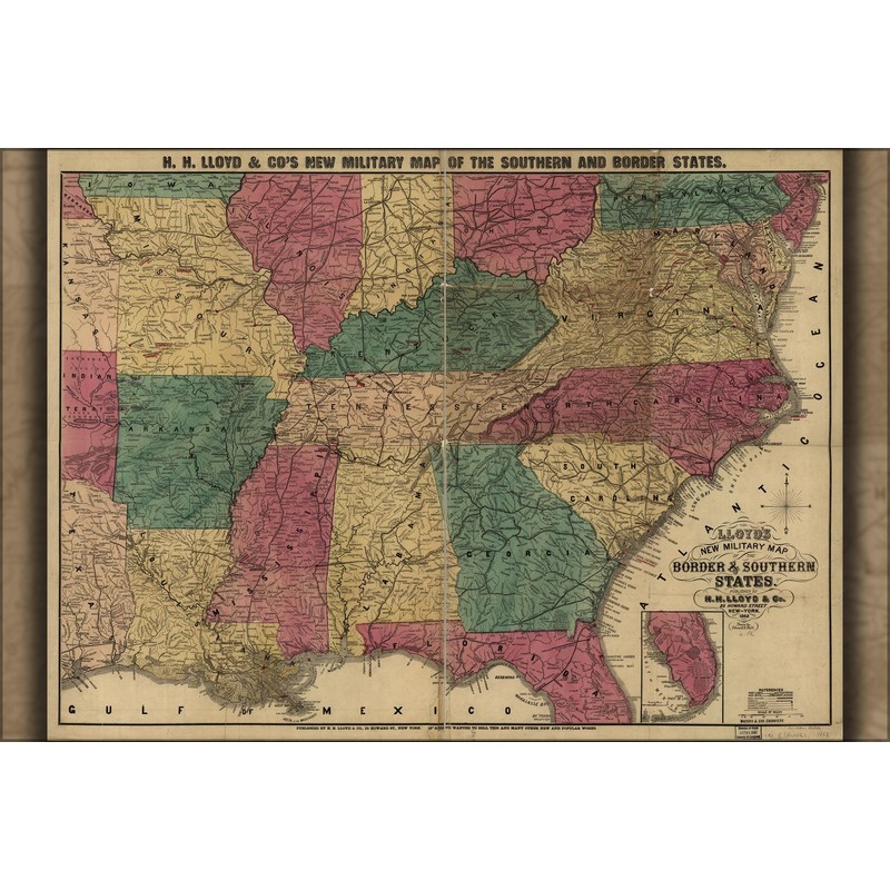 History Galore 24"x36" Gallery Poster, civil war map border & southern states 1862