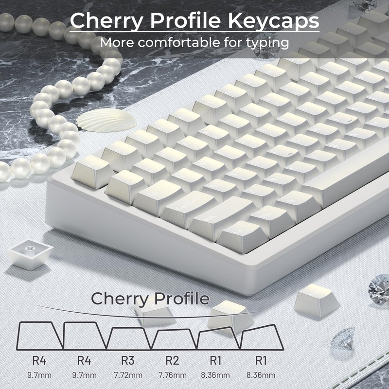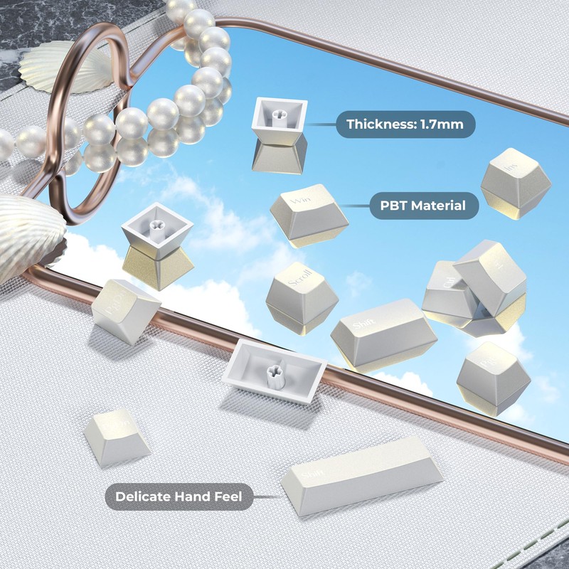 - 【Pearlescent Magic Keycaps】The pearl keycap show a unique pearl effect in the light, as if the tears of a mermaid princess become pearls, and the gloss is very high. At different angles, the reflection of the keycap will have different effects, such as a foggy highlight effect from the side, and a cold white from the front. This custom keycap is not only gorgeous, but also makes the keyboard look more high-end.