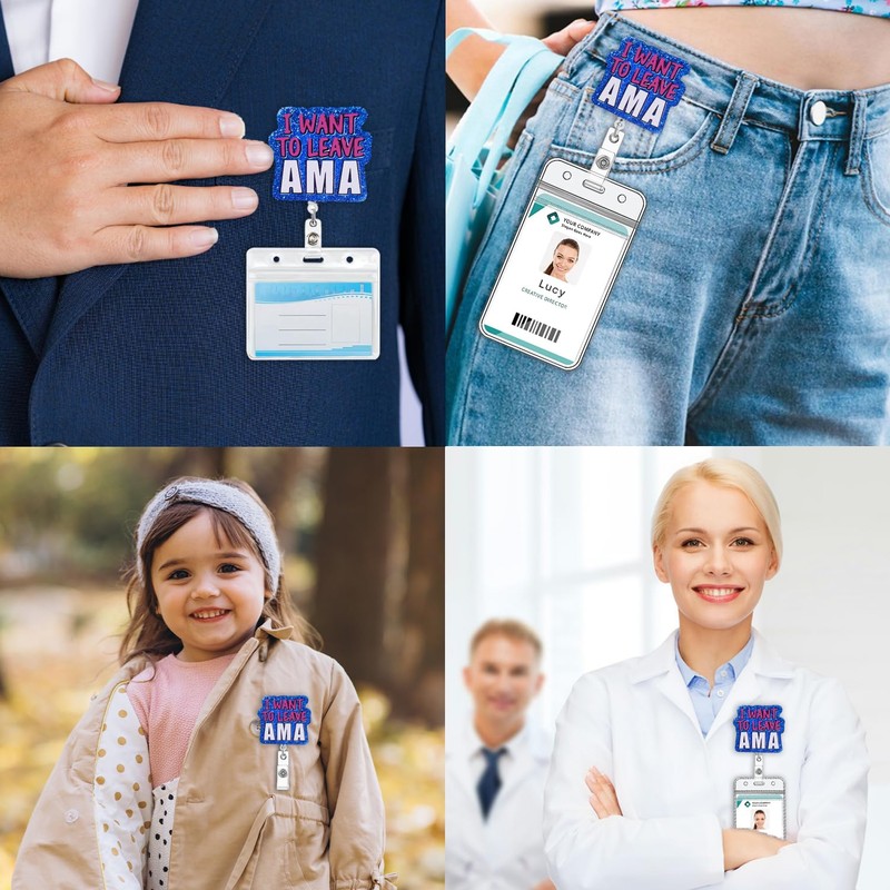 Hitluste Funny Badge Holder Retractable Cute I Want to Leave Badges Reels Accessories ID Clip for Nursing Nurses Doctor Student Teacher Healthcare Medical Work Assistant MA CNA RN ER Office Gifts