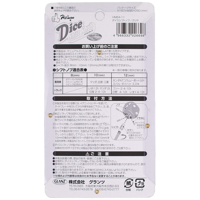HITMAN HM64-11 Dice Shift Knob, Clear