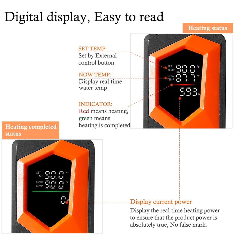 • [External controller] No need to take out the heater from the fish tank to set or adjust the temperature, you can operate it through the external controller of this fish tank heater, easy to use. The temperature setting range is 64.0°F~93.0°F (18.0°C~34.0°C).