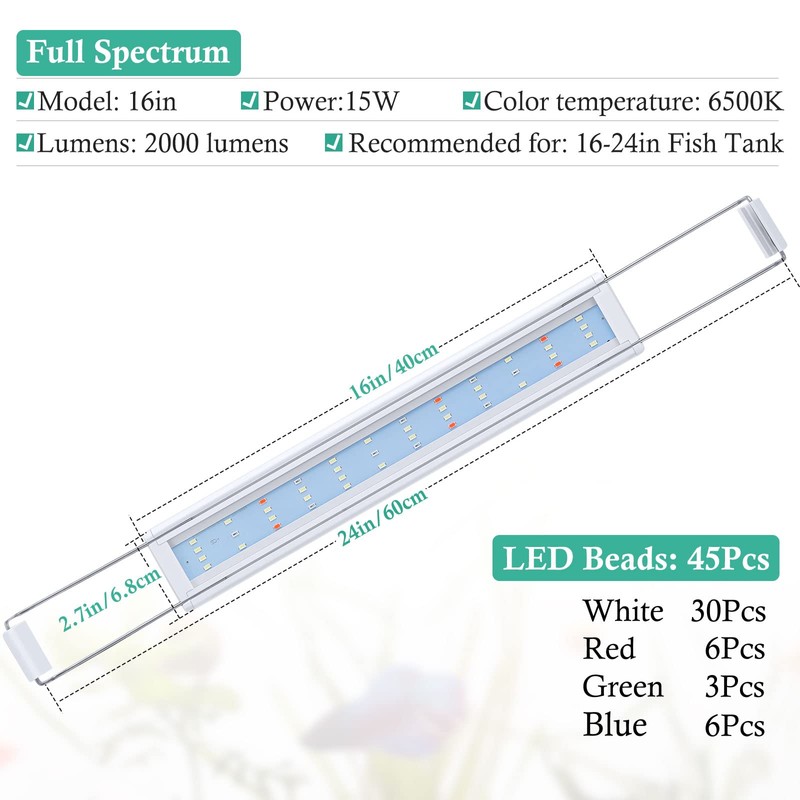 HITOP Full Spectrum LED Aquarium Light – 16-24” Classic Fish Tank Light with ...
