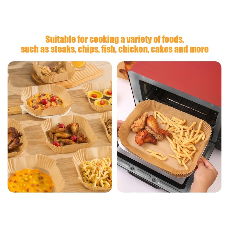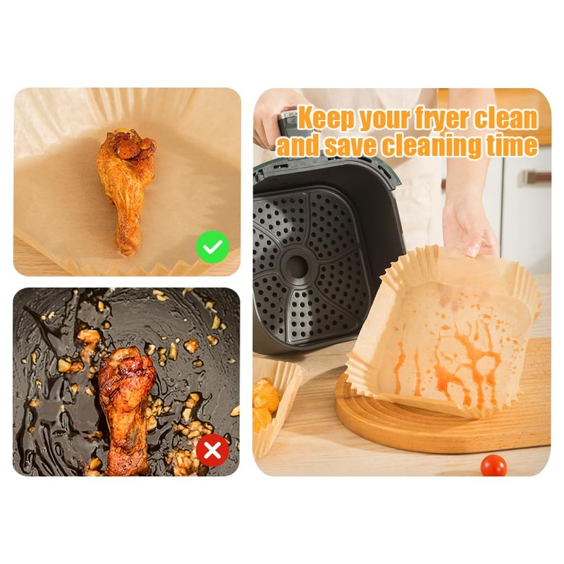 - Easy to clean: baking paper for hot air fryer reduces the impact of grease and food residue on the fryer, makes cleaning effortless and airfryer baking paper extends the life of the device. Compared to reusable baking paper, air fryer baking paper square avoids the growth of bacteria and allows you to enjoy your food without worry.