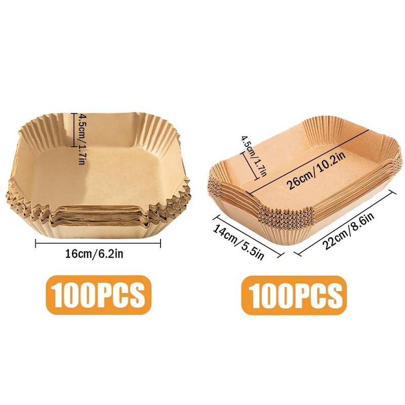 - Package includes: you will receive 100 pieces 16 x 16 x 4.5 cm air fryer baking paper square, 100 pieces 22 x 14 x 4.5 cm airfryer baking paper rectangular, baking paper for hot air fryer with 4.5 cm high edges to protect your hot air fryer from food splashes on the sides of the fryer, no tearing. There are there in the fold, Bending required, disposable bowl air fryer easy to use and ready to cook.