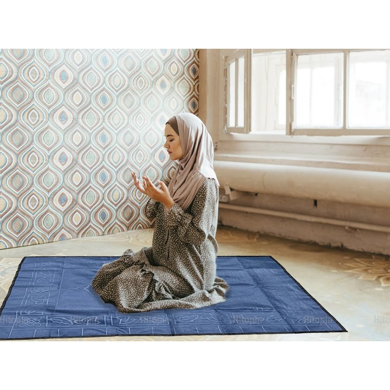 Hitopin Portable Muslim Prayer Rug, Soft Muslim Prayer Mat, Ramadan Portable Travel Prayer Mat, Muslim Prayer Carpet, Islamic Prayer Mat for Muslim Women&Men, Soft Luxury, for Muslim Prayer-Dark Blue