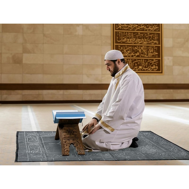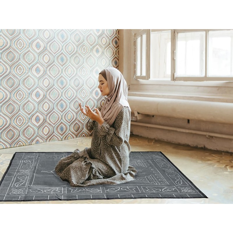 Hitopin Portable Muslim Prayer Rug, Soft Muslim Prayer Mat, Ramadan Portable Travel Prayer Mat, Muslim Prayer Carpet, Islamic Prayer Mat for Muslim Women&Men, Soft Luxury, for Muslim Prayer-Dark Grey