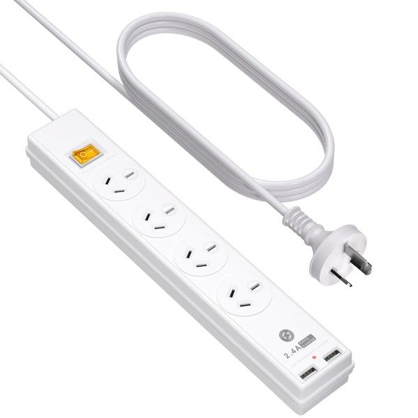 - 【Power strip with USB Ports】4 AC outlets (240V/10A) and 2 USB ports, this USB power strip can charge up to 6 devices simultaneously.
