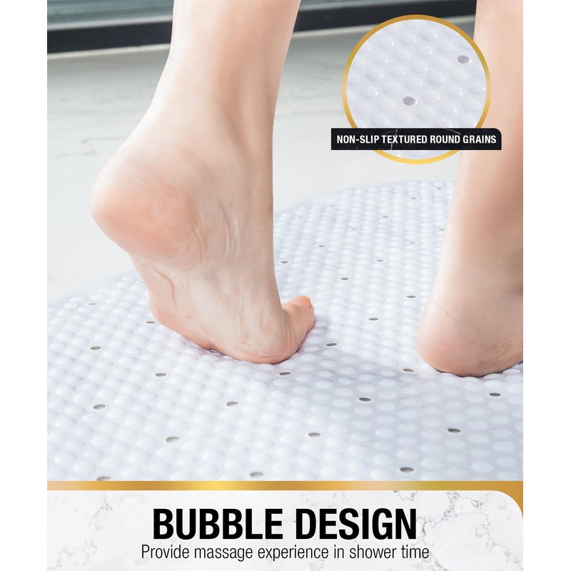 - Premium Quality: Elevate your bathing experience with our anti-slip bath mats crafted from soft PVC material. This oval bathtub mat has a bubble surface design and a luxurious foot massage sensation during showers—perfect for the elderly, babies, and young kids.
