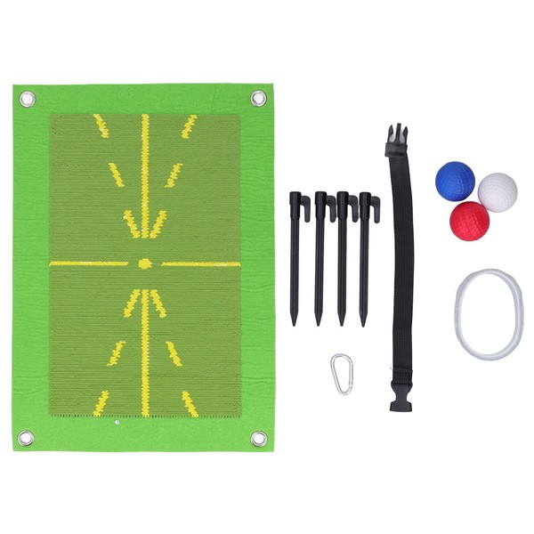 1、Path Visual Feedback: Get instant feedback on your swing with this hitting practice mat. See where your club makes contact with the ball and improve your swing in just a few days. 2、Swing Detection: Use the alignment guides on the hitting mat to improve your swing and slice skills. Visual guides help you see the path and impact of the club head for more effective practice. 3、For Indoors or Outdoors: Hitting practice mat can be set up indoors or outdoors in seconds. The included ground spikes make it easy to use outdoors 4、Anti Slip: Non slip rubber bottom keeps the mat securely in place, allowing you to practice swings with ease. You can use this training mat for a lot of swing detection and hitting practice. 5、Excellent Material: Made of impact resistant material, quality rubber on the bottom bark hitting surface simulates a real fairway or tee area, giving a real feeling of hitting