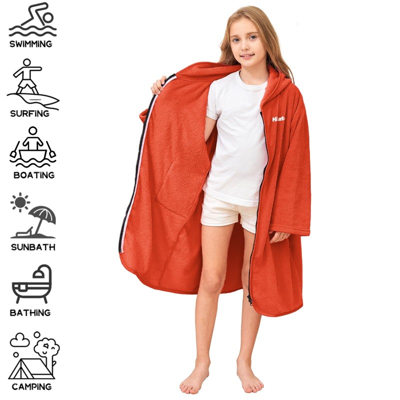 Kids Zip Up Changing Towel Surf Poncho with Hood for Beach, Swimming, Surfing, Home Bath, Unisex Plus Size!
