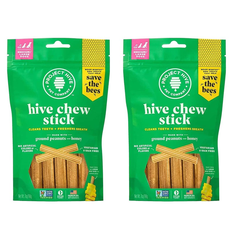 Hive Treats for Dogs 2 Pack — Healthy, Non-GMO Project Verified, Natural Peanut Butter Flavored, Natural, Vegetarian Chews, Made in The USA (Chew Sticks, Large Breeds)