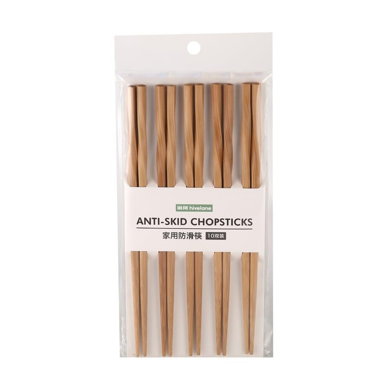 Hivelane Anti-Skid Bamboo Chopsticks, 10 Pairs – 25cm Reusable Natural Wood Chopsticks for Household Use, Non-Slip Square Handle, Eco-Friendly and Durable, C1178