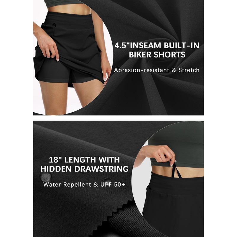 - 【18" Perfect Length for All Activities】Our 18" length skorts strike the ideal balance, falling just above the knees. Designed with both style and modesty in mind, they cater to those who prefer a more refined length. Whether you're hitting the golf course or strolling in the park, these skorts are your versatile companion.